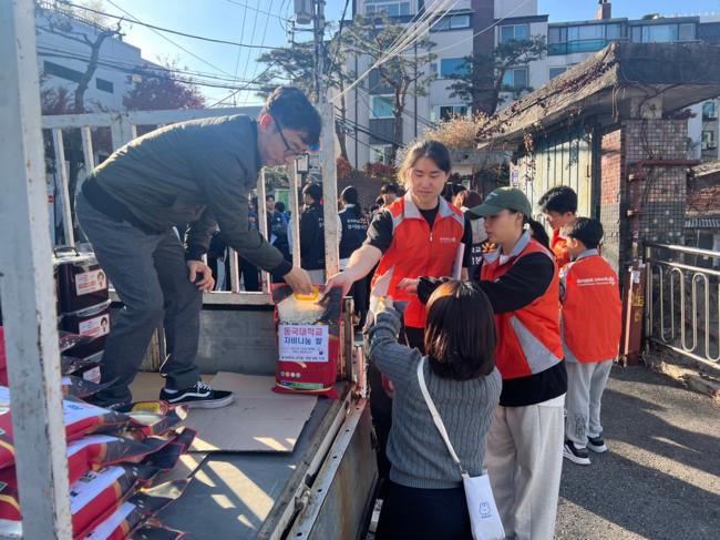 동국대 학생들이 쌀배달 봉사를 하고 있다.서울 중구 다산동주민센터가 20일 재개발 장기 지연으로 노후 주거 환경에서 생활하는 신당9구역 주민들을 위해 전방위 지원을 펼치고 있다고 밝혔다.