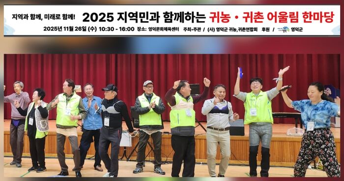 영덕군은 11월 26일(수) 영덕문화체육센터에서 ‘2025 지역민과 함께하는 귀농·귀촌 어울림 한마당’을 성황리에 개최했다. 이번 행사는 지역 주민과 귀농·귀촌인 간의 화합과 소통을 도모하고, 안정적인 농촌 정착을 지원하기 위해 마련됐다.