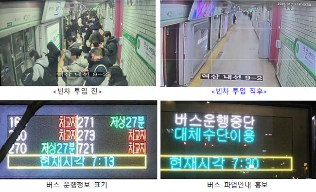 시는 120다산콜센터와 교통정보센터 토피스, 시 홈페이지와 SNS, 도로 전광판과 버스정보안내단말기 등을 통해 실시간 안내를 제공하고 있다. 셔틀버스 등 세부 정보는 시와 자치구 홈페이지에서 확인할 수 있다. 아울러 경제단체들과 협력해 유연근무 활용 등 출근시간 조정을 안내하며 시민 불편 완화에 나섰다.