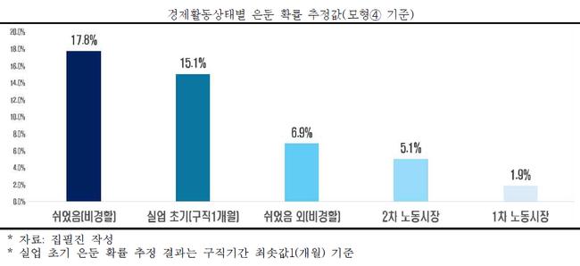 은둔의 주요 원인으로는 취업난이 지목됐다. 조사에서 청년들이 은둔 이유로 가장 많이 꼽은 항목은 ‘취업의 어려움’(32.8%)이었다. 경제활동 상태별 은둔 확률을 보면 ‘쉬었음’ 청년은 17.8%, 실업 초기 청년은 15.1%로, 취업 청년(2.7%)에 비해 6~7배 높은 수준으로 나타났다. 특히 실업 상태가 장기화될수록 은둔 가능성은 빠르게 상승해, 구직 기간이 14개월에 이르면 24.1%, 42개월을 넘기면 50%를 상회하는 것으로 추정됐다.