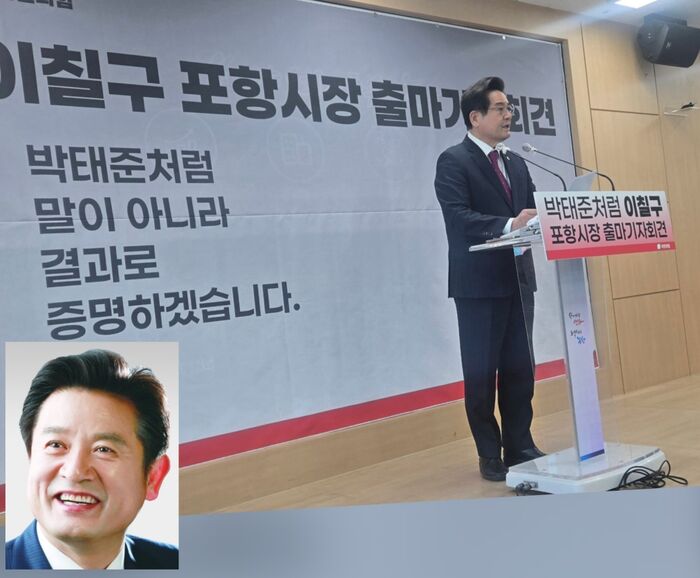경북도의회 의원 이칠구가 11일 포항시장 선거 출마를 공식 선언했다. 이 후보는 이날 출마 선언문을 통해 “포항을 ‘위기의 도시’에서 ‘안전한 산업도시, 살기 좋은 생활도시’로 바꾸겠다”며 “말이 아니라 100일의 실행, 1년의 성과로 증명하겠다”고 밝혔다.