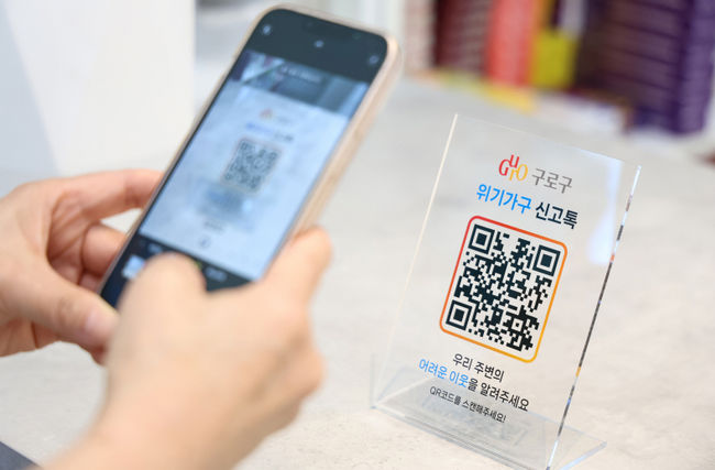 위기가구 신고 QR(큐알)코드를 인식하는 모습.구로구는 2026년 위기가구 신고자 포상금 지원 사업을 추진한다고 20일 밝혔다. 실직이나 질병 등 위기 상황에 놓인 가구를 이웃이 발견해 신고하면 포상금을 지급하는 제도다. 주민 참여를 통해 복지사각지대를 해소하는 것이 목적이다.