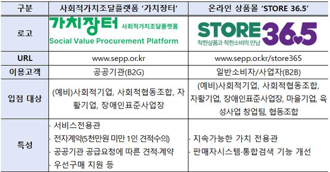 고용노동부와 한국사회적기업진흥원은 8일 사회적가치 조달 플랫폼 `가치장터`와 착한소비 온라인몰 `스토어(STORE) 36.5`를 새롭게 개통했다고 밝혔다.