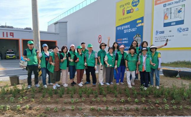 지난 15일 진행된 봉사활동에는 김기동 지도자협의회장, 윤경희 부녀회장, 임인숙 문고회장을 비롯해 20여 명의 회원들이 참여했다. 참가자들은 잡초가 무성해 도시미관 개선이 시급했던 교통섬의 빈 공간에 아스타, 페튜니아 등 4종의 가을꽃을 심으며 구슬땀을 흘렸다.