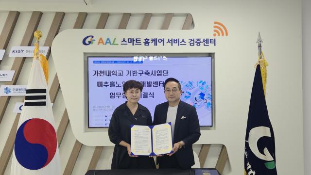 가천대학교 기반구축사업단과 미추홀노인인력개발센터가 고령친화 스마트홈 헬스케어 서비스 확산 및 노인 일자리 창출을 위한 업무협약을 체결했다