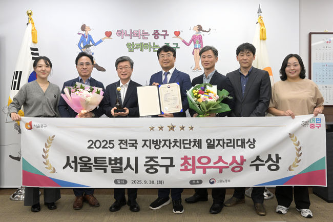 서울 중구(구청장 김길성)는 고용노동부가 주관한 ‘2025년 전국 지방자치단체 일자리대상’ 우수사업 부문에서 전국 1위인 최우수상을 수상했다고 밝혔다.